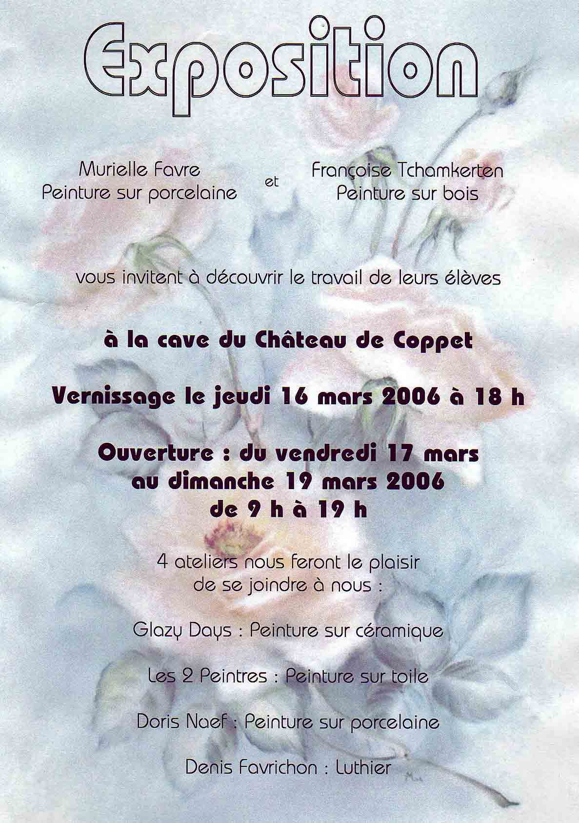 17 au 19 mars 2006 Exposition à la cave du Château de Coppet/VD |